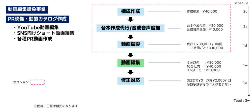 「素材はあるが編集ができない。」「編集者が不足している。」といったニーズに応え、編集のみを請け負います。